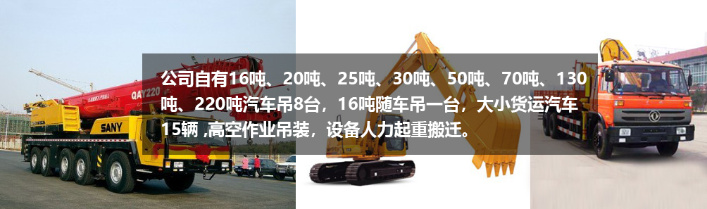 ? ????? 湘鄉(xiāng)市陽光運(yùn)輸有限公司前身由湖南鐵合金集團(tuán)汽運(yùn)公司改制重組而成。經(jīng)過多年的市場磨礪發(fā)展,公司設(shè)立工程機(jī)械租賃部、設(shè)備安裝維護(hù)部以及物流運(yùn)輸中心。公司自有16噸、20噸、25噸、30噸、50噸、70噸、130噸、220噸汽車吊8臺,16噸隨車吊一臺,大小貨運(yùn)汽車15輛 ,高空作業(yè)吊裝,設(shè)備人力起重搬遷。公司地理位置優(yōu)越,實力雄厚,歷史悠久,有二十幾年吊裝行業(yè)的經(jīng)驗。 公司的理念:精誠團(tuán)結(jié),精益求精,客戶的滿意就是我們最大的愿望! ...